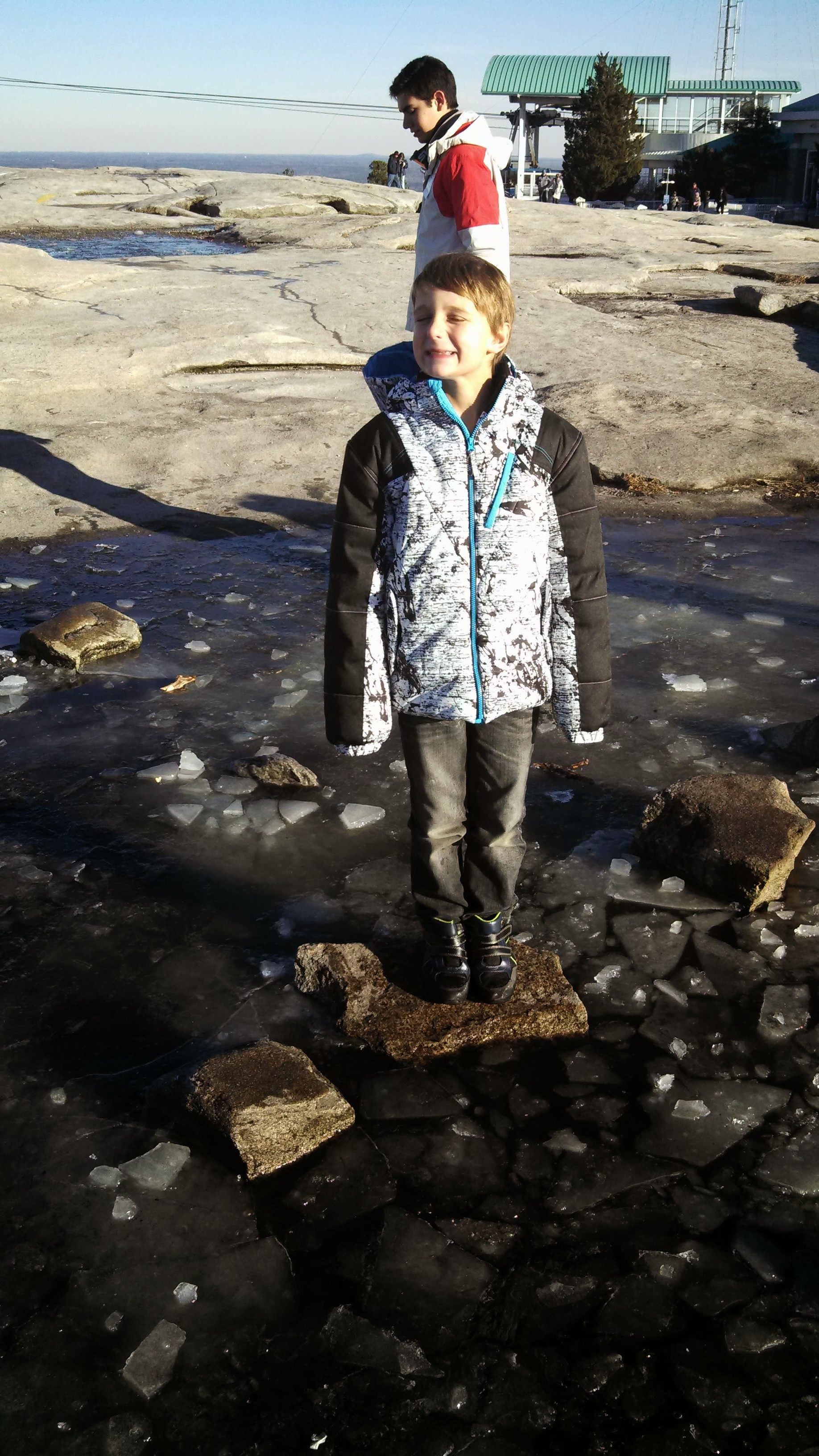 Chuck Jr. standing in ice on top of Stone Mountain, Georgia