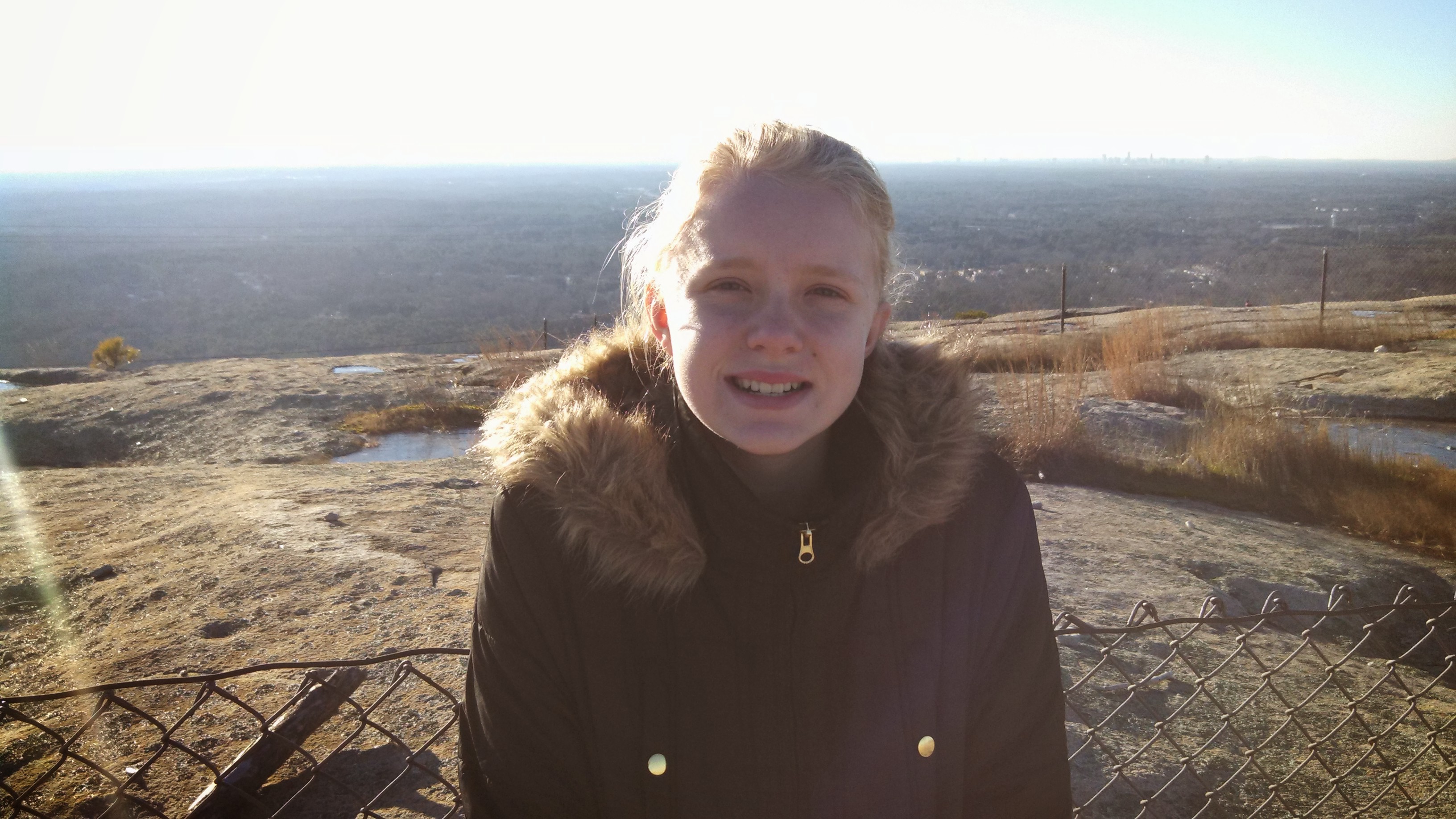 FaithJean on top of Stone Mountain – can’t see it from this pic, but when there we could see the skyline of Atlanta to the left of her.