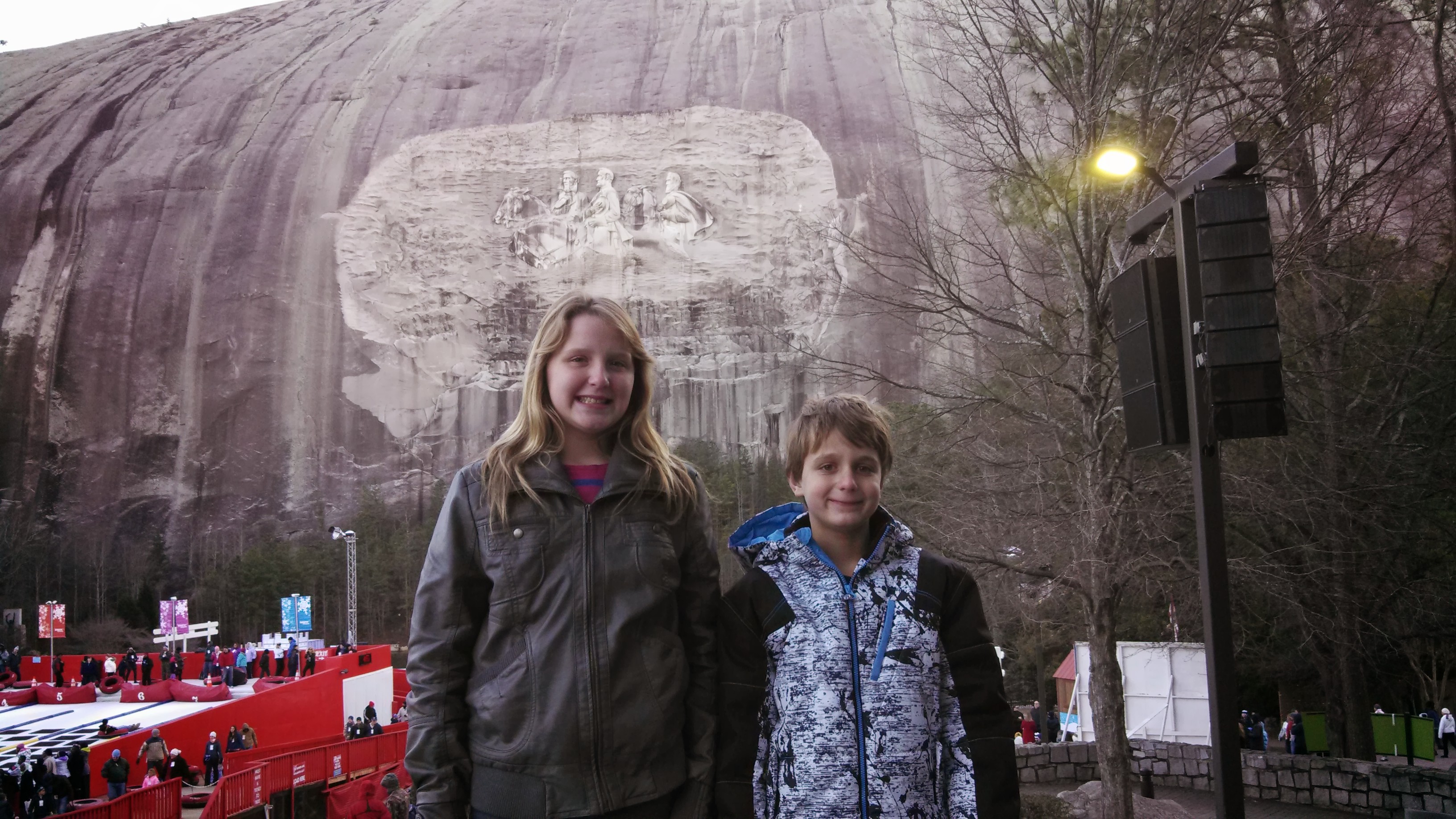 Hello 2014! The first two weeks of January were great and blessed! Hi, this is FaithJean, and I’ll be writing and summarizing the first 2 weeks of January below for the family. Well, after we came back from SoCal, we stayed in an awesome Embassy Suites. While we were there we enjoyed our stay, and Daddy said he really liked not having to worry about every creak and noise, and not having to analyze everything! Also, while we were there, Mommy and Daddy gave to various organizations, and celebrated their 23rd anniversary! They liked their anniversary being different for a change, and surprising each other with gifts. They also accidentally got each other the same gift (chocolate strawberries) and one night a guy payed their bill. It was cool and interesting having New Year’s Eve in a different place, especially since we were about 10 miles from were the giant peach dropped in Atlanta. In Atlanta, we visited Stone Mountain. Stone Mountain is kind of like the “Rushmore of the South”. Daddy found it interesting to learn the perspectives of the Civil War from the south at Stone Mountain. After Stone Mountain we met up with Daddy’s friend Frank. It was really nice talking with him at the BBQ place we went to. Daddy said, “ I enjoyed hooking up with Frank, that was a special time. I missed not being able to hook up with my friend Brian, hopefully we’ll be able to catch him as we go up the east coast.” The most exciting thing that happened while we were there was probably the snow. One night there were tiny snowflakes outside our hotel. Nothing lasted ‘till the morning, but it was the first snow we have ever had at our “house”. After Atlanta, we went on the road again! We reached a small town in Southern Georgia where we went to a church called Grace Church. After services a nice man approached us and prayed with us. In his prayer, he called Daddy a “tree of righteousness”. I thought that was a pretty cool complement!