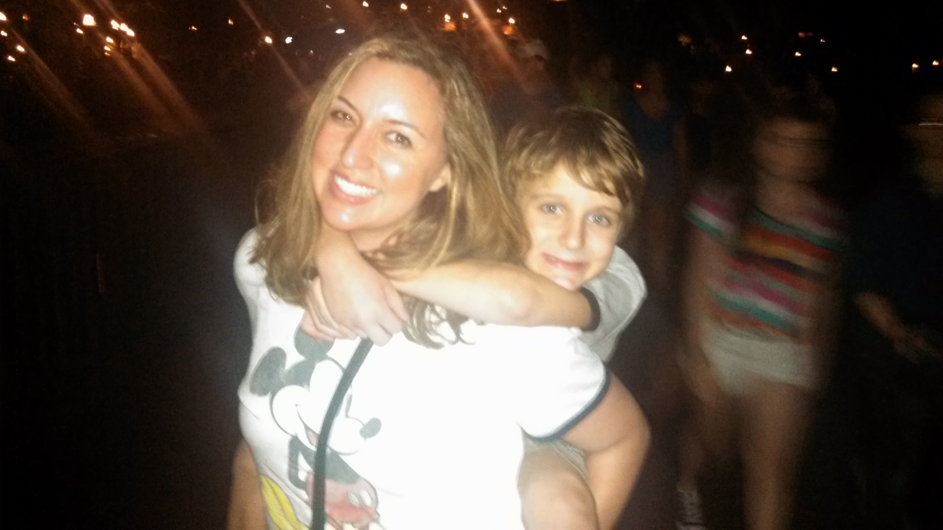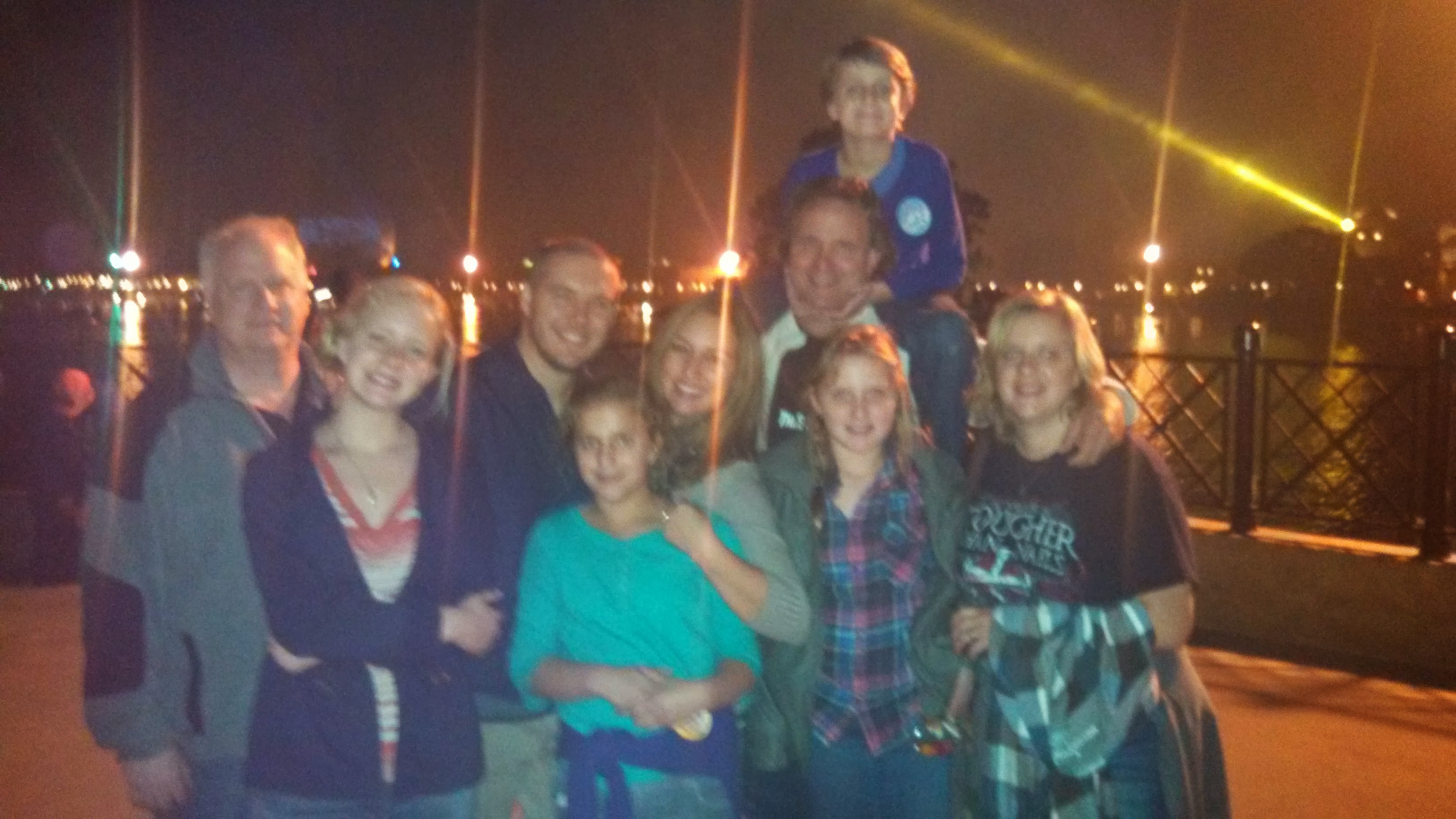All of us on last night together – Epcot. Just finished a firework and water show behind us.