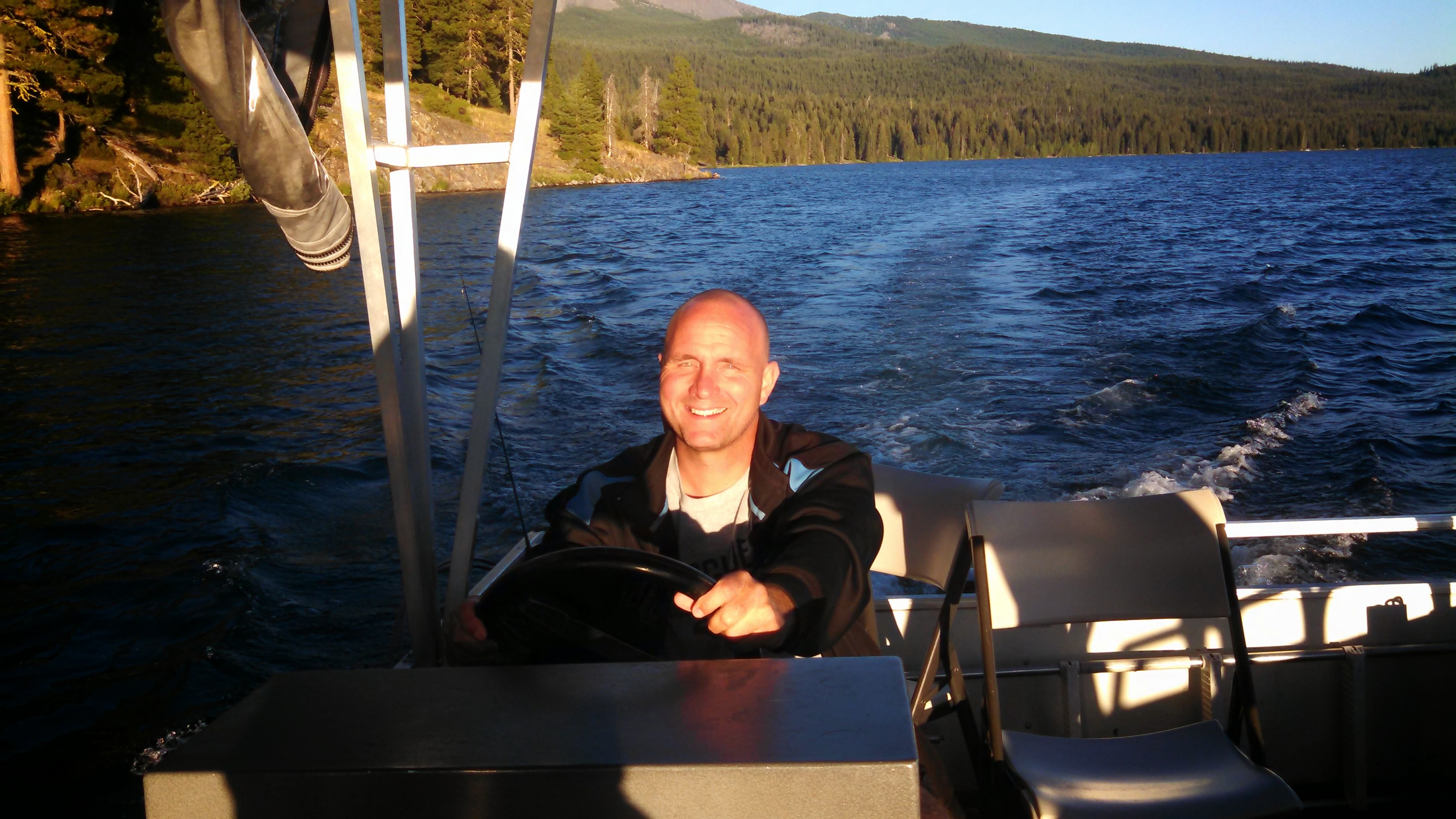 Diamond Lake fishing trip. Hope driving the boat(I’m pretty sure we killed some fish along the way:()